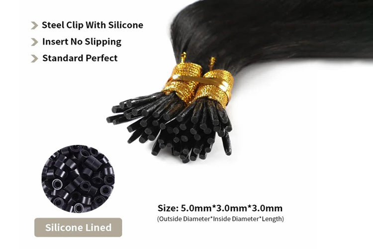 STYLEUHAIR 5.0MM*3.0MM*3.0MM I Tip Hair Extensions Body Wave Natural Remy Human Hair (#1B Natural Black) ES01